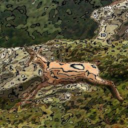 ![]() Level Curves: I obtained the curves using the sine of the intensity value. Using a min(curve,picture) style function, I could mix both pictures. |