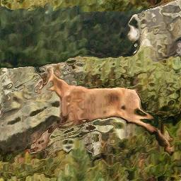 | Texture: This one is a bit complex; I actually used the source picture as a translation mask to that checkerboard (i.e. the red and green components of the source picture indicated how much I should move the pixels of that texture), and mixed the result to the weakened source picture.