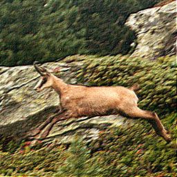 | Smoothed: I repeatedly performed the following operation: For each pixel, replace it by the darkest (lightest) neighbouring pixel. After some time, this has the effect of removing peaks in the picture, thus giving it that smoothed look. (The triangular shapes you see in some place are due to the choice of these neiboughring pixels)